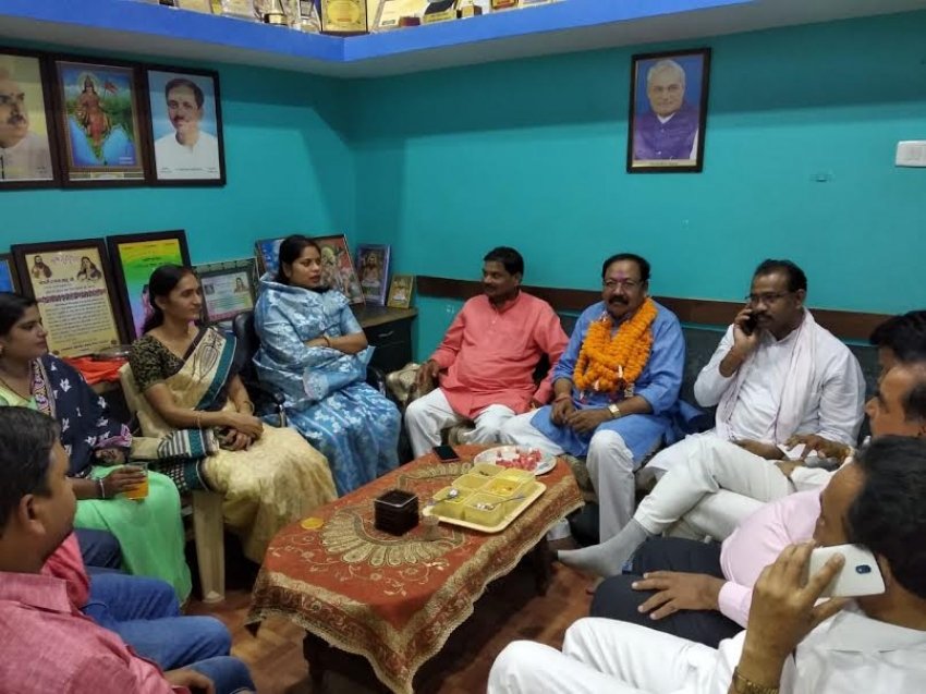 धमतरी। लोकसभा क्षेत्र के नवनिर्वाचित सांसद मोहन मण्डावी के दिल्ली प्रधानमंत्री नरेंद्र मोदी सहित मंत्री मंडल के सपथ ग्रहण कार्यक्रम से रायपुर से कांकेर जाते समय धमतरी पहुँचने पर रायपुर रोड में विधायक निवास में विधायक श्रीमती रंजना साहू ने तिलक लगाकर, शाल श्रीफल व मुँह मिठाकार उनका स्वागत अभिनंदन किया गया एवं जीत की बधाई प्रदान किये। इससे पहले विधायक निवास के सामने सांसद मोहन मंडावी का कार्यकर्ताओं द्वारा फूलमालाओं से जोरदार स्वागत किया गया । इस अवसर पर दयाराम साहू, राजेन्द्र शर्मा,विजय साहू जीए प्रकाश गोलछा,सविता यादव, डीपेंद्र साहू, भगत यादव, भरत सोनी,विजय ठाकुर, जनपद सदस्य अनिता यादव, रेशमा सेख़, अवनेंद्र साहू, चोखा देशमुखए अमन राव एगोपाल साहूए नेमलाल साहू, शंकर सिन्हा फलेश साहू, रोशन सिन्हा, तरुण साहू, गंगाराम सिन्हा, शेखर शिन्हा, नरेंद्र साहू, कुलेश सोनी, सेवक राम साहू, सतीश कुमार साहू, सेवक राम सिन्हा सहित कार्यकर्ता गण उपस्थित थे।