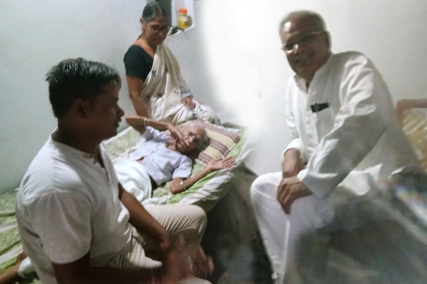 मुख्यमंत्री श्री भूपेश बघेल आज बेमेतरा जिले के ग्राम गाड़ामोर (ब्लाक बेरला) पहुंचकर अपनी बुआ श्रीमति वेदवती परगनिहा से मिलकर उनके स्वास्थ्य का हाल-चाल जाना। उनकी बुआ की उम्र 102 वर्ष है। मुख्यमंत्री ने उनके स्वास्थ्य लाभ की कामना की। मुख्यमंत्री श्री बघेल अपने बचपन से जुड़ी स्मृतियों को ताजा किया। वे अक्सर गर्मी की छुट्टियांे में अपनी बुआ के घर आया करते थे। परिवार के सदस्यों ने परंपरागत रूप से पीढ़ा में खड़े कराकर मुख्यमंत्री की आरती उतारी एवं टीका लगाकर आत्मीय स्वागत किया। इस अवसर पर विधायक बेमेतरा श्री आशीष कुमार छाबड़ा, जिला पंचायत अध्यक्ष श्रीमति कविता साहू, कलेक्टर श्री महादेव कावरे, पुलिस अधीक्षक श्री प्रशांत ठाकुर उपस्थित थे।