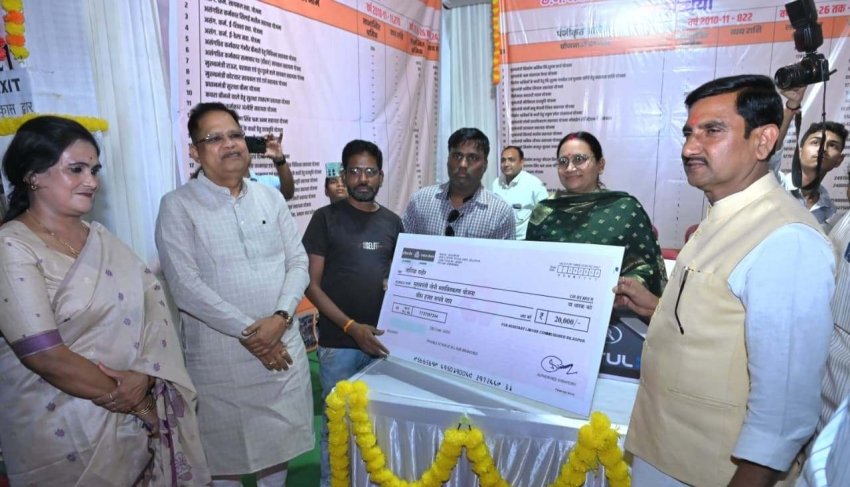 बिलासपुर में जिला स्तरीय राज्योत्सव कार्यक्रम में केंद्रीय आवासन एवं शहरी विकास राज्य मंत्री श्री तोखन साहू ने श्रम विभाग द्वारा संचालित विभिन्न कल्याणकारी योजनाओं के हितग्राहियों को चेक और सहायता सामग्री वितरित की। इस अवसर पर उन्होंने कहा कि राज्य और केंद्र सरकार की योजनाएँ आमजन को आत्मनिर्भर बनाने और समाज के अंतिम पायदान तक विकास की रोशनी पहुंचाने में महत्वपूर्ण भूमिका निभा रही हैं।