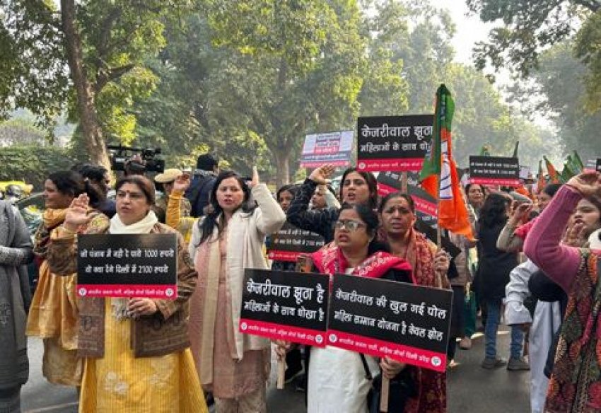 नई दिल्ली । दिल्ली सरकार की महत्वाकांक्षी महिला सम्मान योजना को लेकर बीजेपी की महिला विंग ने पूर्व सीएम अरविंद केजरीवाल के खिलाफ मोर्चा खोल दिया है और सड़कों पर उतरकर प्रदर्शन कर रही हैं। दिल्ली महिला मोर्चा ने इसे फर्जी करार दिया है और केजरीवाल पर दिल्ली की महिलाओं को छलने और महिला सम्मान के नाम पर झूठी तसल्ली देने का आरोप लगाते हुए उनके आवास के बाहर विरोध प्रदर्शन किया। महिला मोर्चा की अध्यक्षा ऋचा पांडेय के नेतृत्व में किये गए इस विरोध प्रदर्शन में प्रदेश उपाध्यक्ष योगिता सिंह, मोर्चा प्रभारी श्याम बाला, प्रदेश प्रवक्ता एवं निगम पार्षद शिखा राय, मोर्चा महामंत्री प्रियल भारद्वाज, प्रदेश उपाध्यक्ष शिखा माथुर, संगीता चौधरी, रेखा सिंह सहित अन्य महिला मोर्चा पदाधिकारी भी मौजूद रहीं। हालांकि, इस प्रदर्शन के मद्देनजर दिल्ली पुलिस ने केजरीवाल के आवास के बाहर सुरक्षा के पुख्ता इंतजाम कर रखे थे और बेरिकेड्स लगा कर घेराबंदी भी की गई थी। लेकिन भाजपा महिला मोर्चा की प्रदर्शनकारियों ने बेरिकेड्स को पार करने की कोशिश की, जिस पर पुलिस ने उन्हें डिटेन कर लिया और सभी को मंदिर मार्ग थाने ले आयी, जहां से उन्हें चेतावनी देकर कुछ देर बाद छोड़ दिया गया। प्रदर्शन का नेतृत्व कर रही महिला मोर्चा की अध्यक्षा ऋचा पांडेय मिश्रा ने कहा कि आम आदमी पार्टी की सरकार ने दिल्ली की महिलाओं के साथ धोखा किया है और फर्जी स्किम लॉन्च की है। उन्होंने आरोप लगाते हुए कहा कि जगह जगह कैंप लगाकर महिलाओं के आधार कार्ड, वोटर कार्ड और मोबाइल नंबर लेकर आप एक बड़े फर्जीवाड़े की साजिश कर रही है। लेकिन दिल्ली की महिलाएं इस तरह की फर्जीवाड़े को बर्दास्त नहीं करेंगी। उन्होंने आगे कहा कि पंजाब में 1000 रुपये की स्किम का ऐलान किया गया था, लेकिन आज तक उसे पूरा नहीं किया तो दिल्ली में वह 2100 रुपये कैसे देंगे। यह सिर्फ चुनावी जुमला है और हर वायदों की तरह यह भी एक छलावा है। श्याम बाला ने कहा कि खुद अरविंद केजरीवाल सरकार ने ही अखबार में विज्ञापन के माध्यम से दिल्ली की सभी महिलाओं को चेतावनी दी है कि वह अपना पर्सनल डिटेल किसी को शेयर ना करें। अरविंद केजरीवाल एक पार्टी के तौर पर चाहे जो प्रचार करना चाहे वह करें लेकिन सरकार के नाम पर वह कोई भी कुप्रचार नहीं कर सकते।
