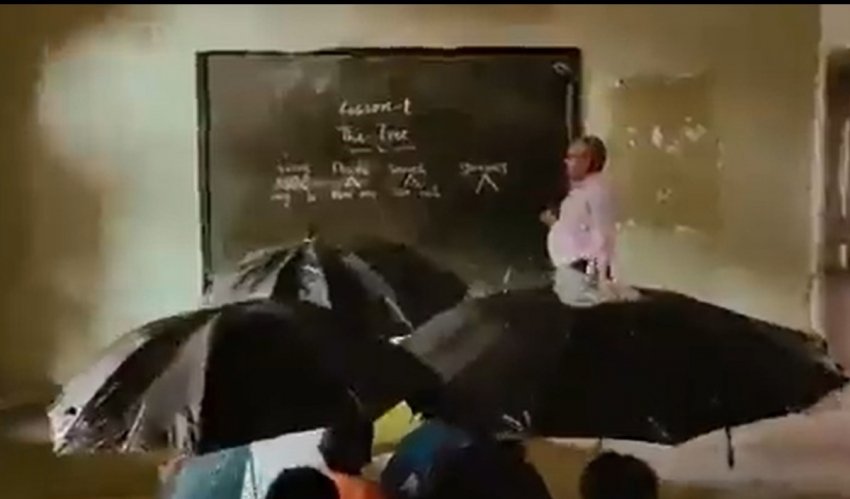 मोटिवेट करने के लिए एक कहावत है कि जिसे पढ़ना होता है वह सड़क की लाइट के नीचे बैठकर भी बढ़ लेता है। पर क्या आपको लगता है कि सरकार द्वारा पढ़ाई-लिखाई पर करोड़ों रुपये खर्च करने के बाद भी स्कूल-कॉलेजों की झज्जर स्थिति में पढ़ता बच्चों के साथ न्याय है। जनता कर देश की व्यवस्था को दुरूस्थ करने के लिए भरती है, ताकि सरकार लोगों को बेहतर सुविधा दे सकें लेकिन दुख की बात यह है कि शहरों में तो दिखाने के लिए काफी हद तक चीजें ठीक करलदी जाती हैं लेकिन गांव-देहात में स्थिति बहुत ही दयनीय है। इस समय मानसून है ऐसे में बारिश कई इलाकों में तेज हो रही हैं। कुछ स्कूलों को बंद कर दिया गया है लेकिन कुछ जगह स्कूल खुले है। ऐसे में बारिश में क्लास के अंदर छतरी लेकर बैठे बच्चों का वीडियो सोशल मीडिया पर वायरल हो रहा है।
